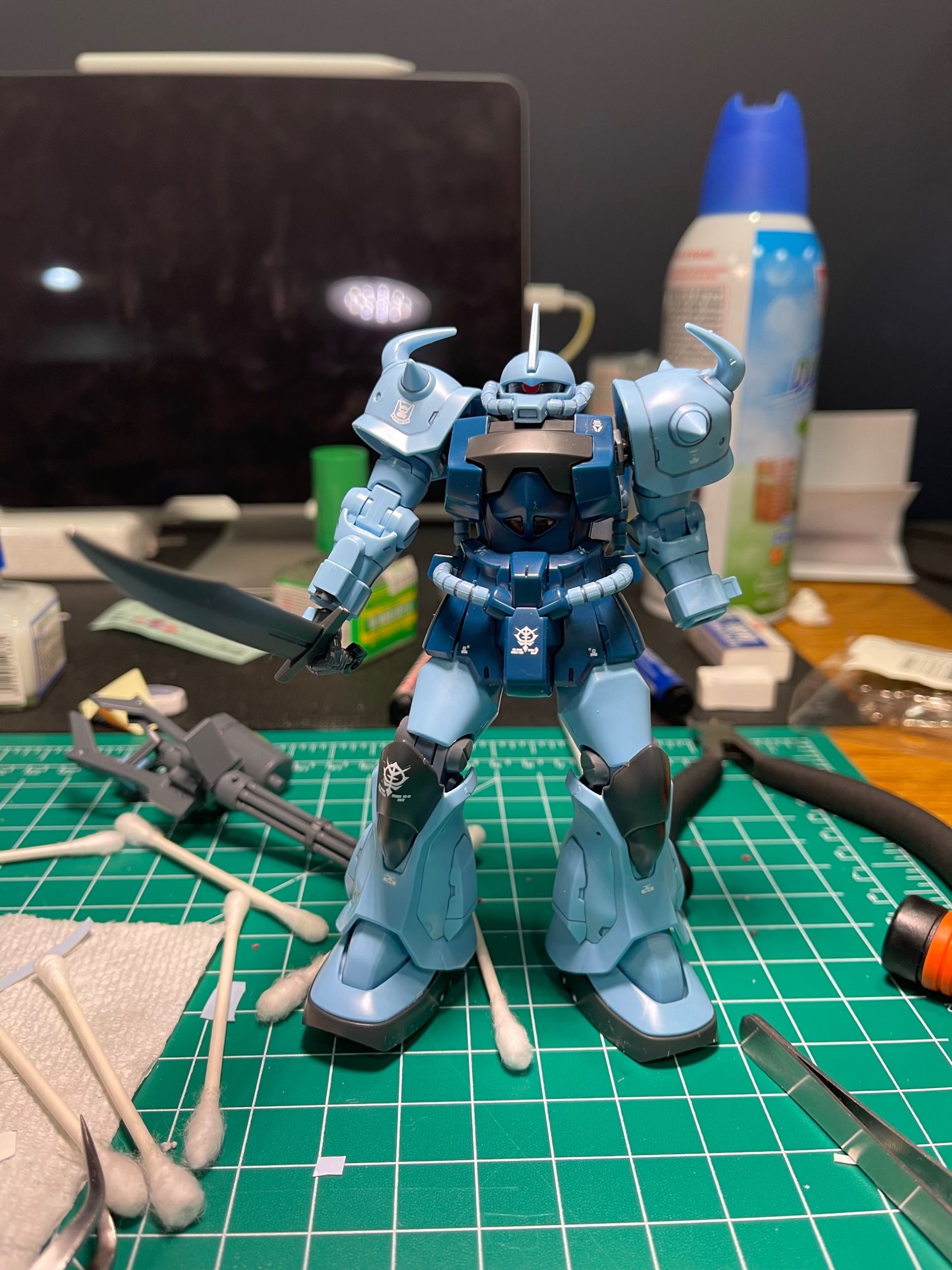 In the end, this build turned out very nice but I was not entirely satisfied yet. I wanted to put a top coat on this kit and see what the hype was all about. I saw a post on Reddit that showed a lineup of about 20 Zaku mobile suits all top coated with a matte finish and it was incredible. I told myself I need to do it too. So I did.