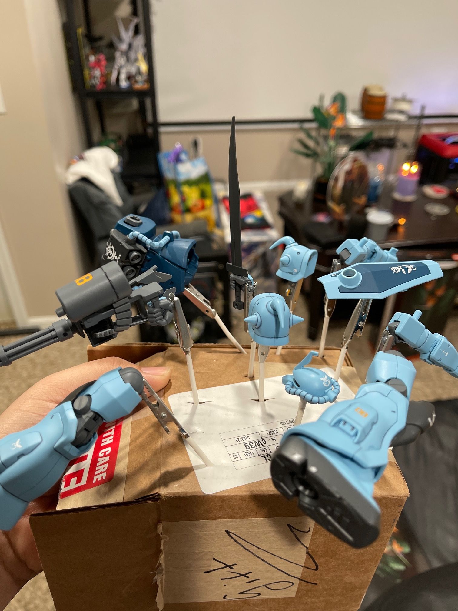 The HG 1/144 Gouf is one of my favorites. I am a sucker for mobile suits that aren't primarily white, blue, and red. Also considering my favorite color is blue it was a no-brainer to pick this guy up at my local hobby store for 13 dollars.